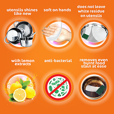 - Apply LIMOZ directly on the sponge and use it on the utensils