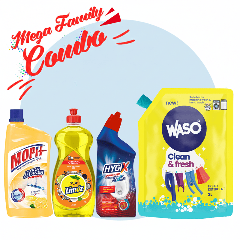 Experience the pinnacle of household cleaning! This all-inclusive pack brings together four exceptional cleaning products to ensure every corner of your home gleams with freshness and hygiene. With our combo, you get:
