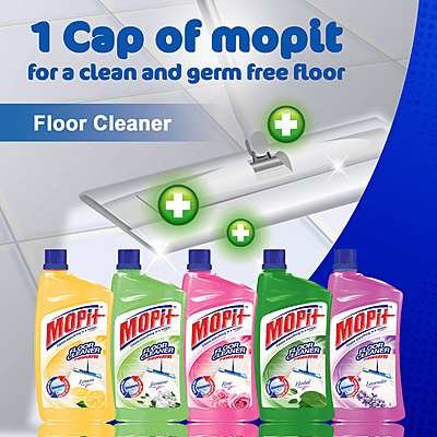 The new advanced formulation cleans and disinfects the floor. It also deposits a protective layer over the surface that make subsequent cleaning very easy and adds shine to the surfaces. The jasmine fragrance blooms while mopping and adds freshness. MOPIT is non corrosive, non toxic, eco friendly and is very safe to use.