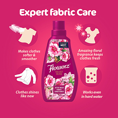 The fresh scent awards you with a whole day of freshness and luscious experience. It smooths the fibers which helps the clothes to last longer and also helps to retain the shape. It helps to keep your clothes in the colour which made you love them. We all love clothes, so care them with FLOWERZ!